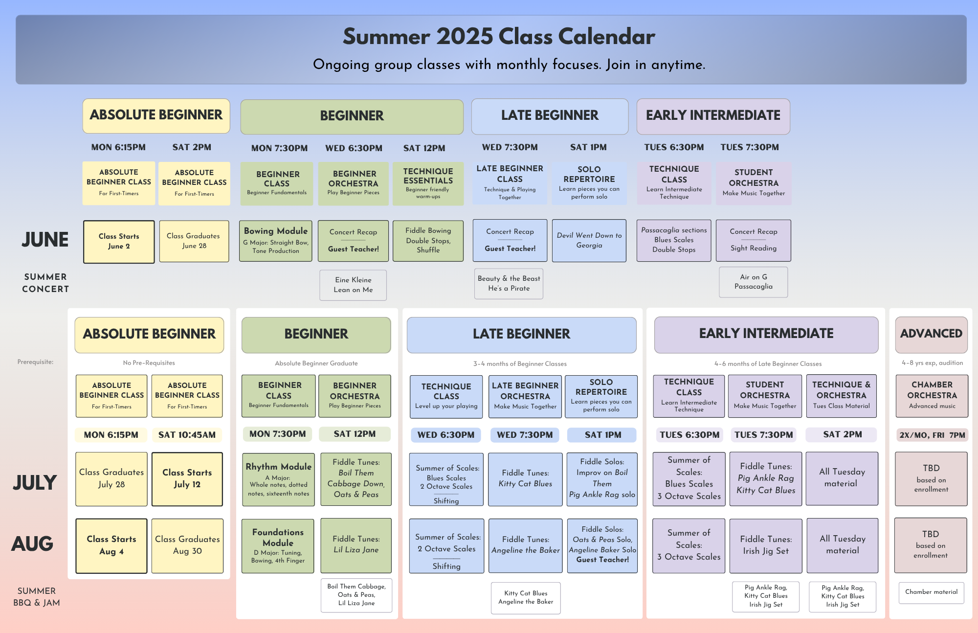 My classes will help you improve on violin so that you can achieve your goals in playing anything you like.