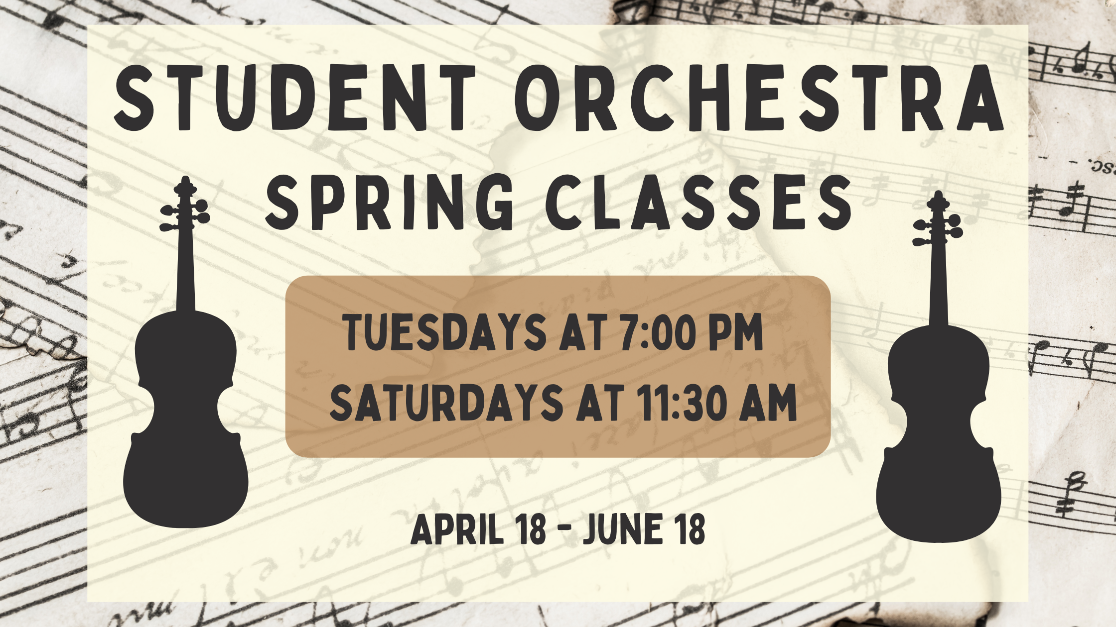 Student Orchestra Classes will be held at the following times during the Spring Semester: